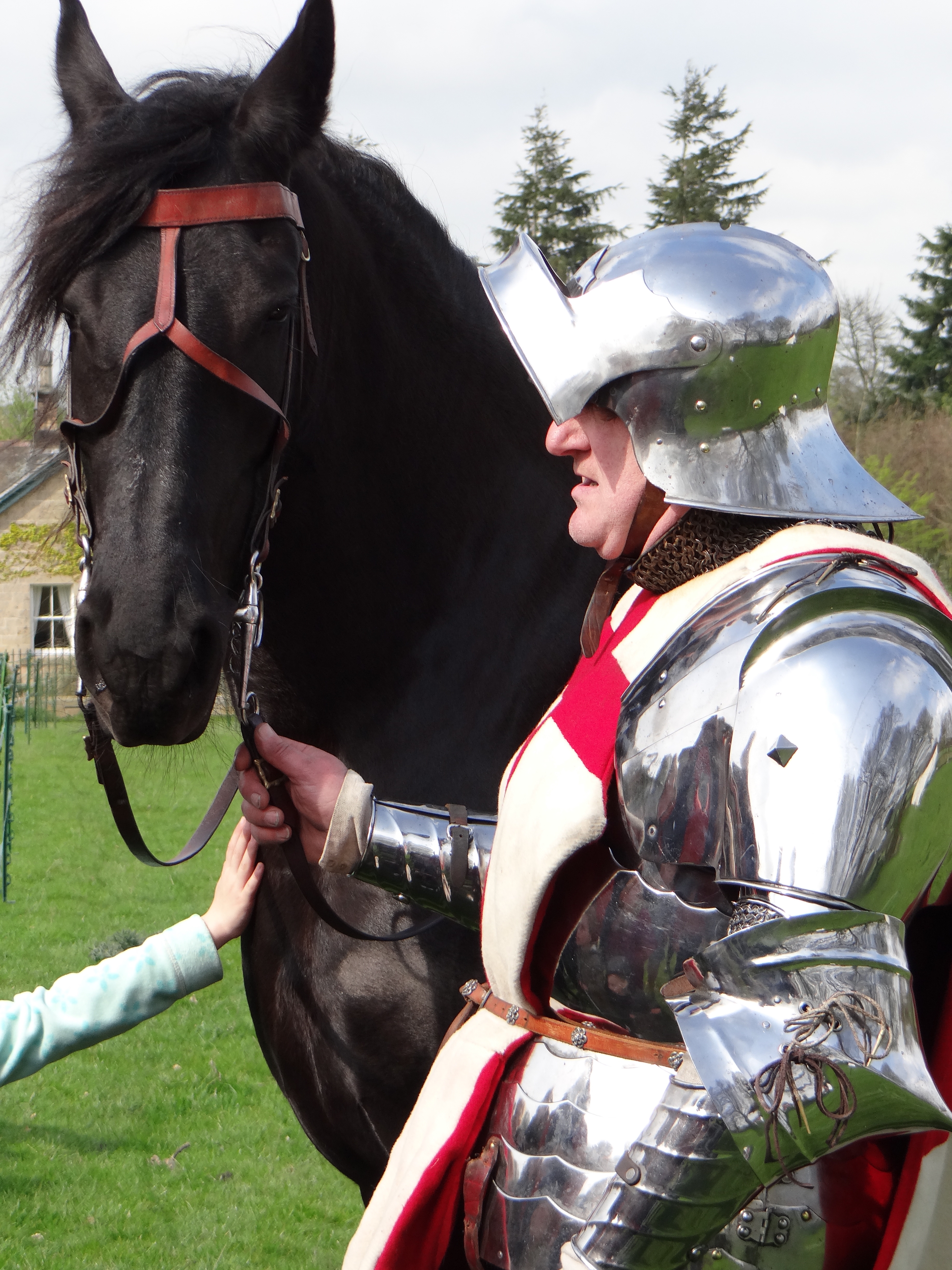 We arrived to find not one but two magnificent purebred Friesian horses preparing for battle. We also found that a small medieval village was busy about their morning chores.