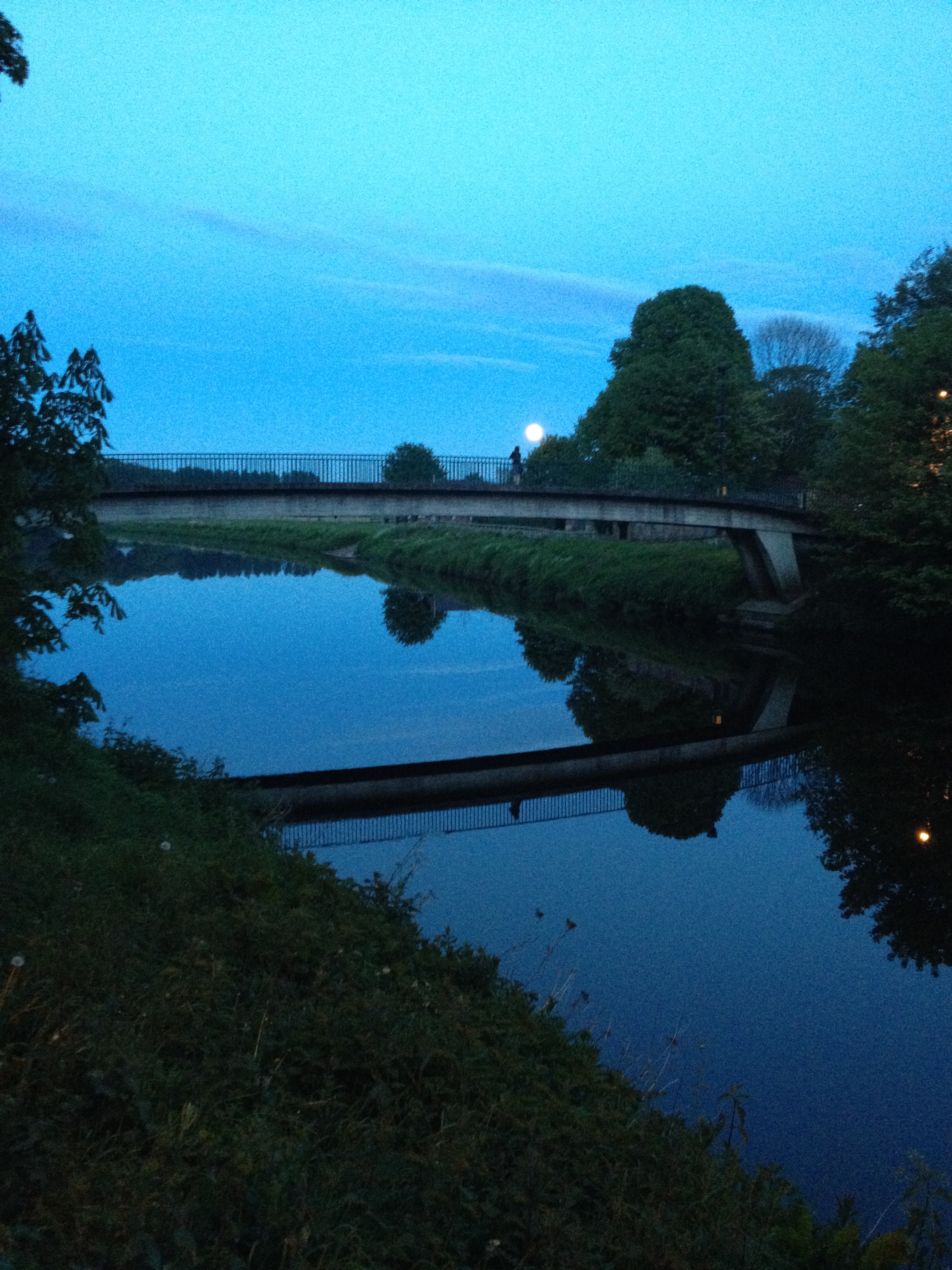 IMG_1398 Published May 29, 2014 at 2448 × 3264 in On My Commute ← Previous Next → A moonrise over the River Wear. On the bridge you may see another who stopped to take it all in.