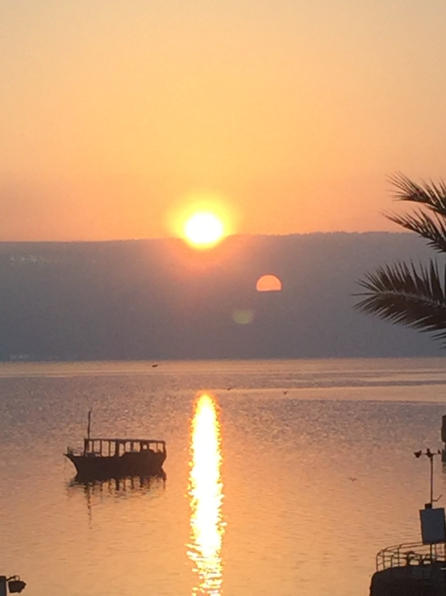 IMG_0258 Published April 27, 2017 at 2448 × 3264 in Holy Land Pilgrimage 2017 ← Previous Next → Sunrise over the Sea of Galilee. Our view each morning at breakfast.